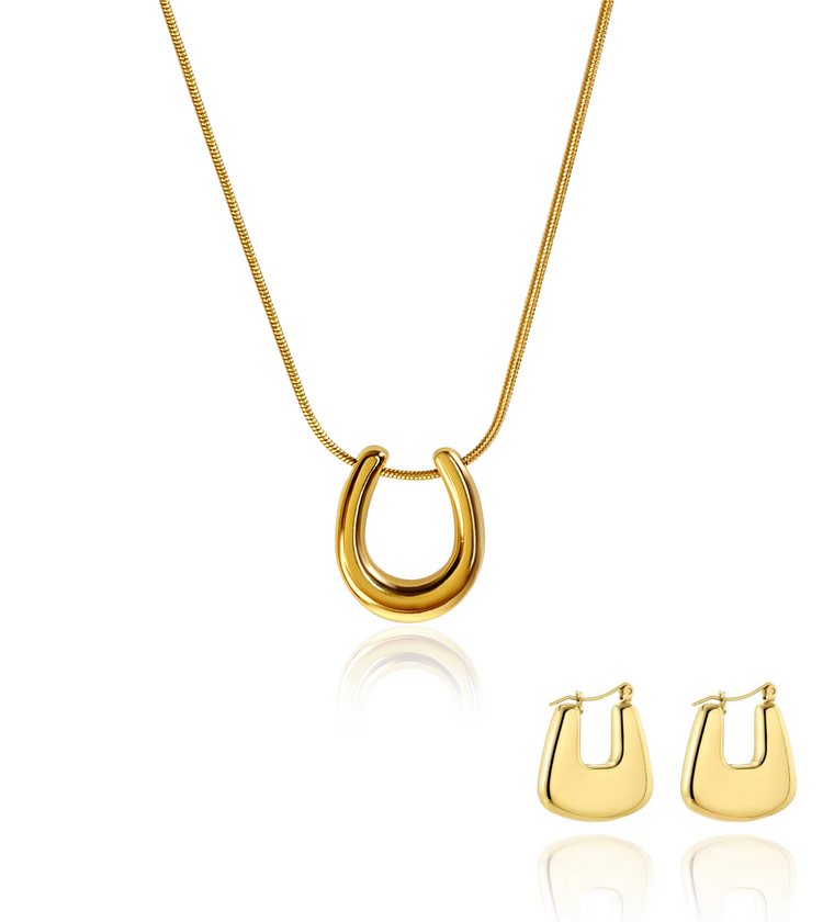 Horseshoe Stainless Steel Necklace and Earrings Set