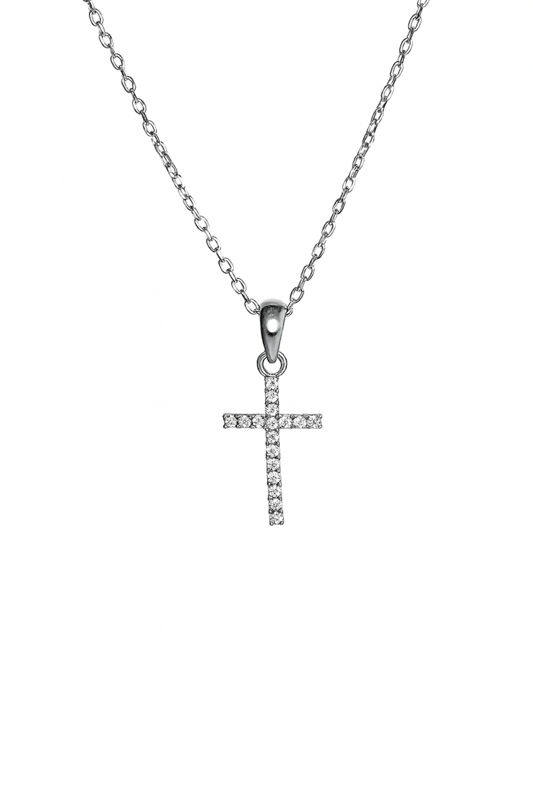 Timeless, meaningful, and beautifully refined. The Cross Pendant Necklace features a sleek silver-tone finish accented with sparkling stone detailing that catches the light from every angle. Designed to symbolize faith, strength, and elegance, this piece is perfect for everyday wear or special gift.